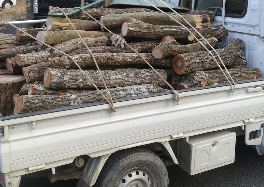 軽トラックに一杯の薪を積んで