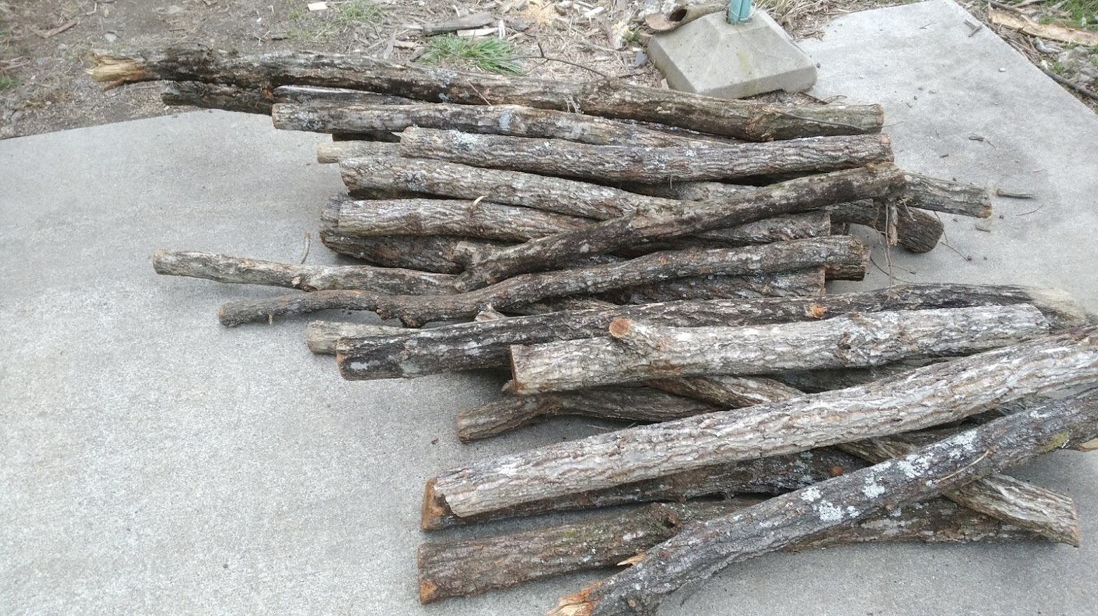うちでは、毎年シイタケの種駒を打ち込んでいます。