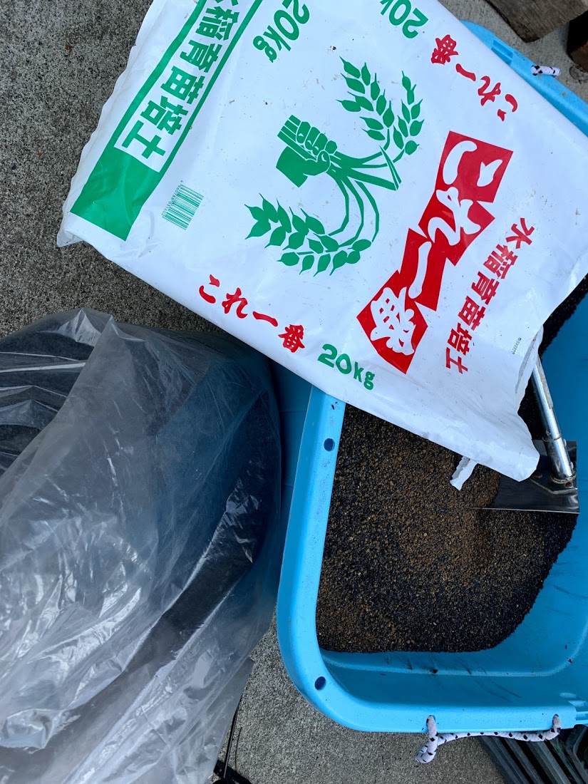 - 自家製もみ殻燻炭を混ぜて使用