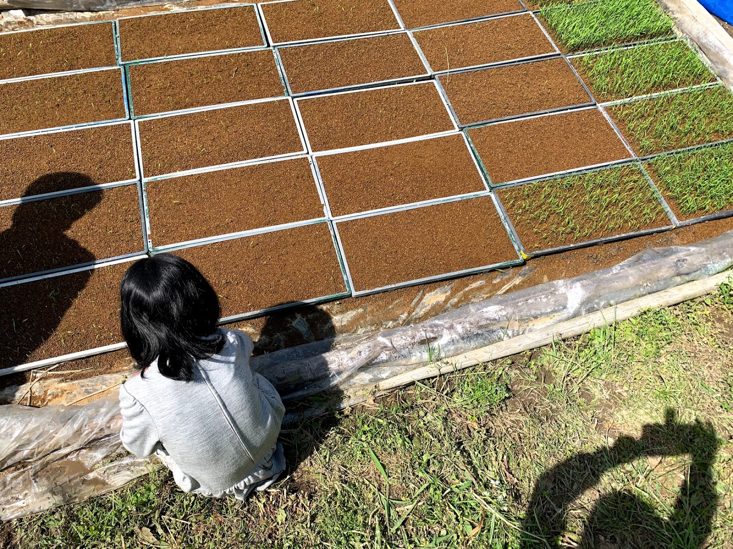 苗箱を並べた後、しっかりと水やりをしたのですが、