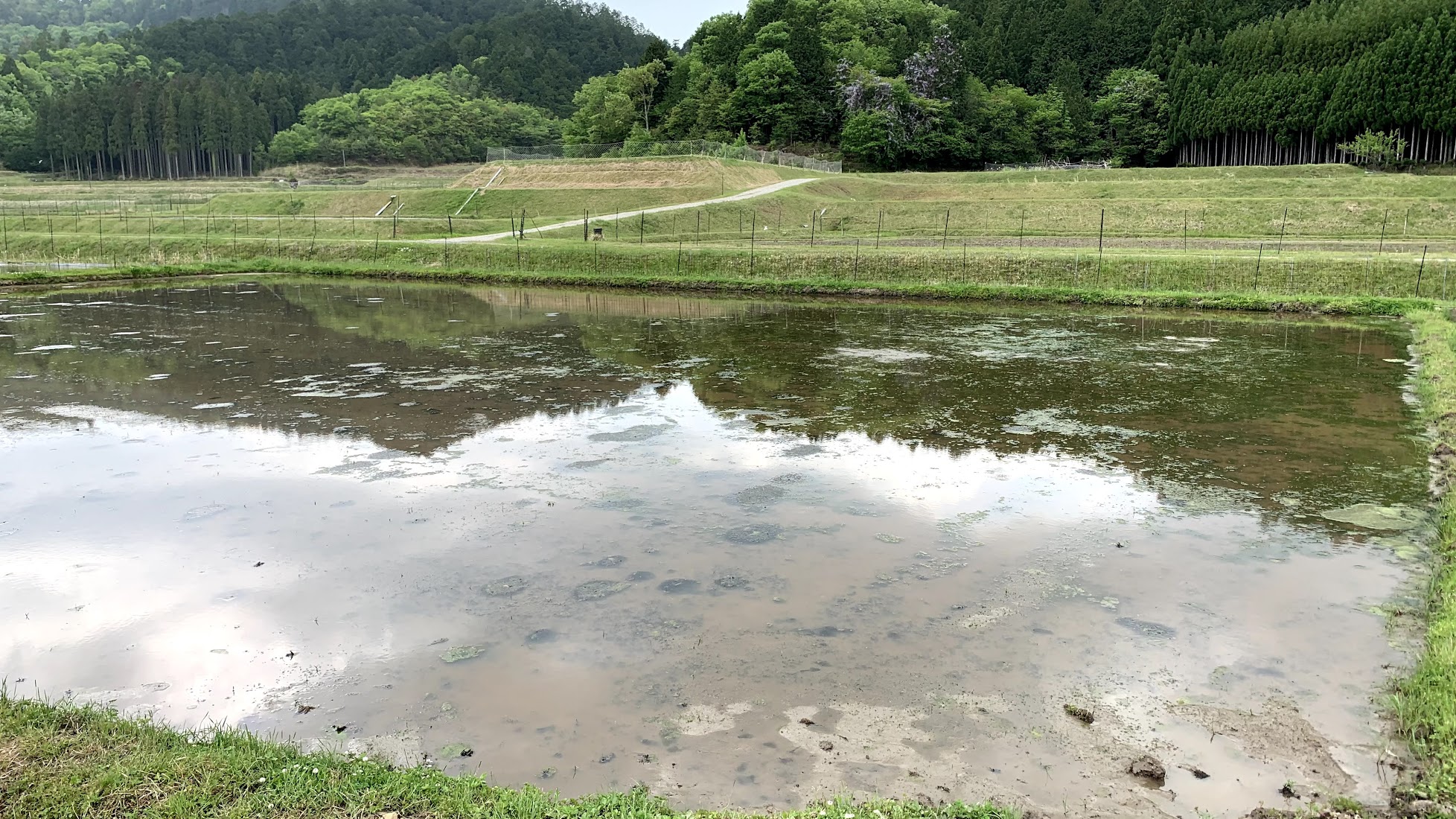 3月に荒代掻きをして、ずっと水をためている田んぼです。